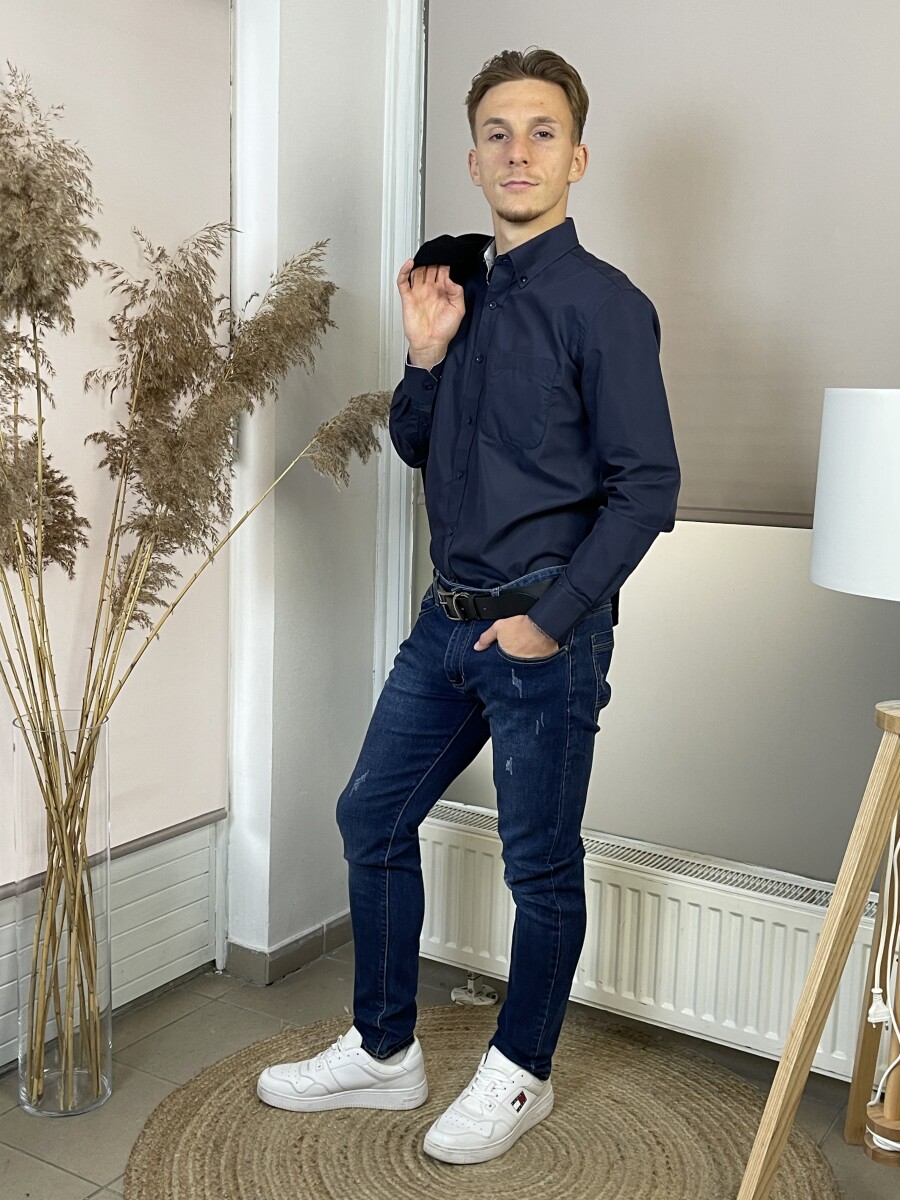 Legombolható galléros, egyenes fazonú, nem rugalmas anyagú, puha tapintású, férfi ing. Ujjvégei mandzsettával záródnak, hosszú ujjú .