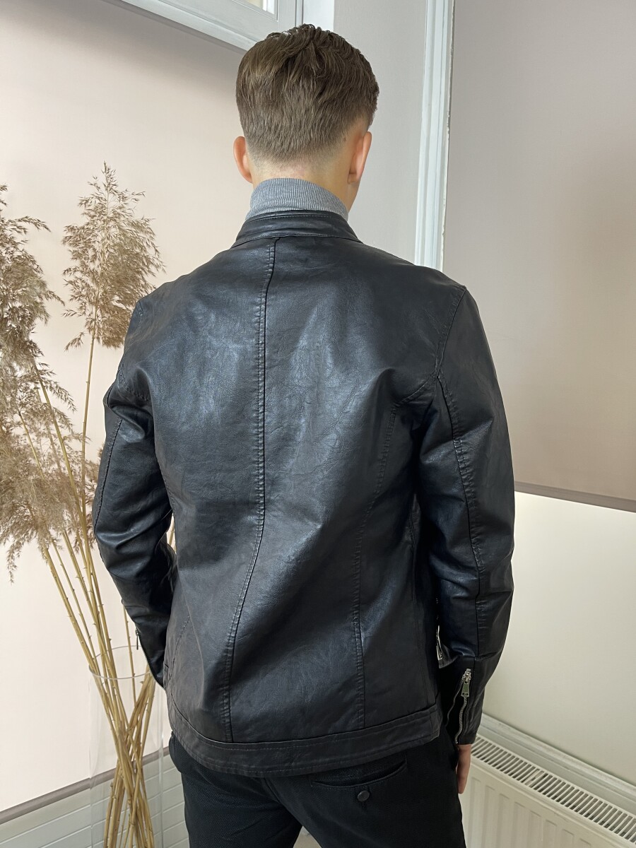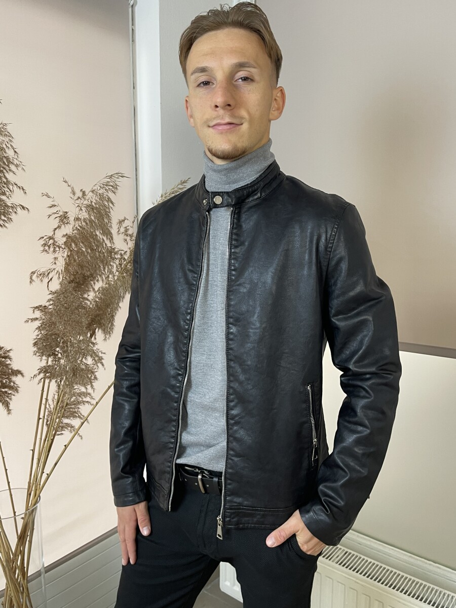 Álló nyakú cipzáros bőrdzseki