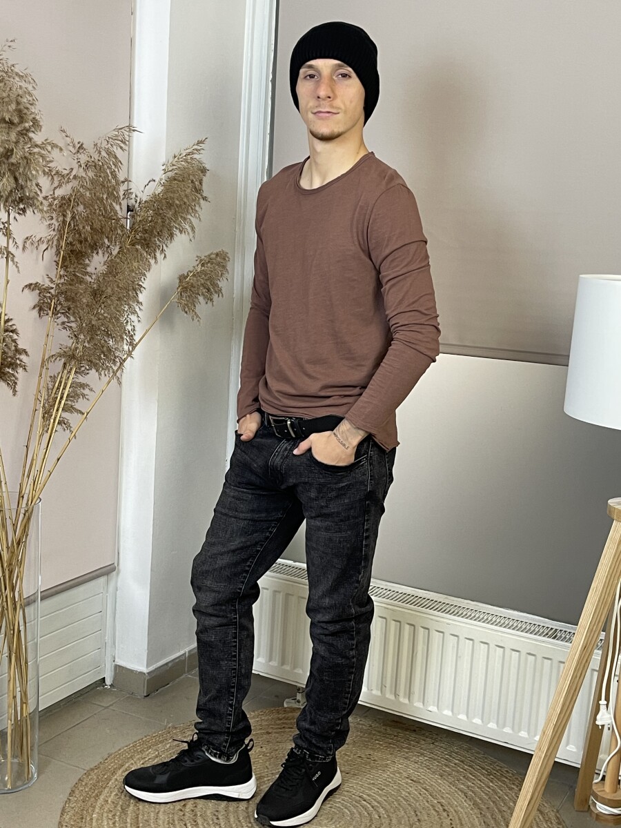 Kerek nyakkivágású, egyenes fazonú, nyak ujj és derék részen lézervágott, klasszikus férfi hosszú ujjú póló .