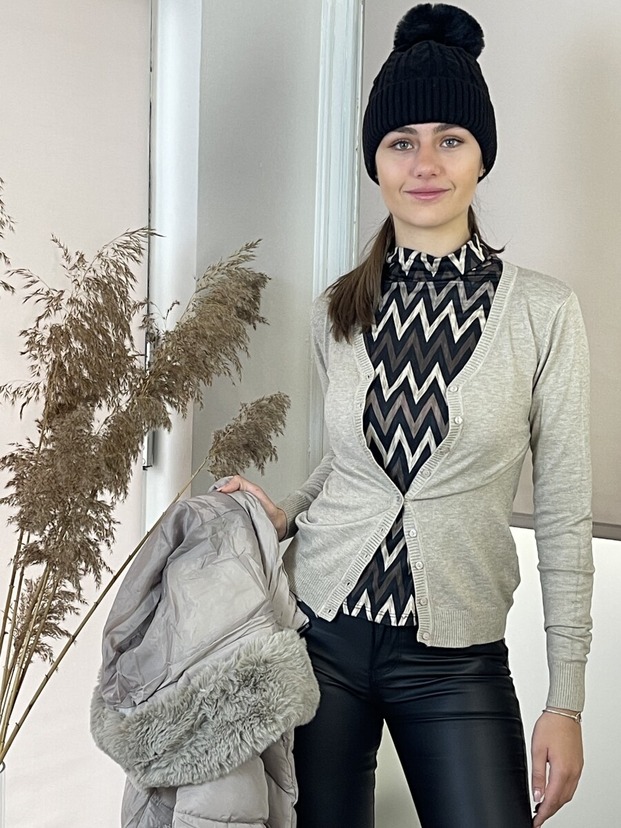 Anyaga nem rugalmas, a terméket bemutató modell 180 cm magas, L méretet visel.