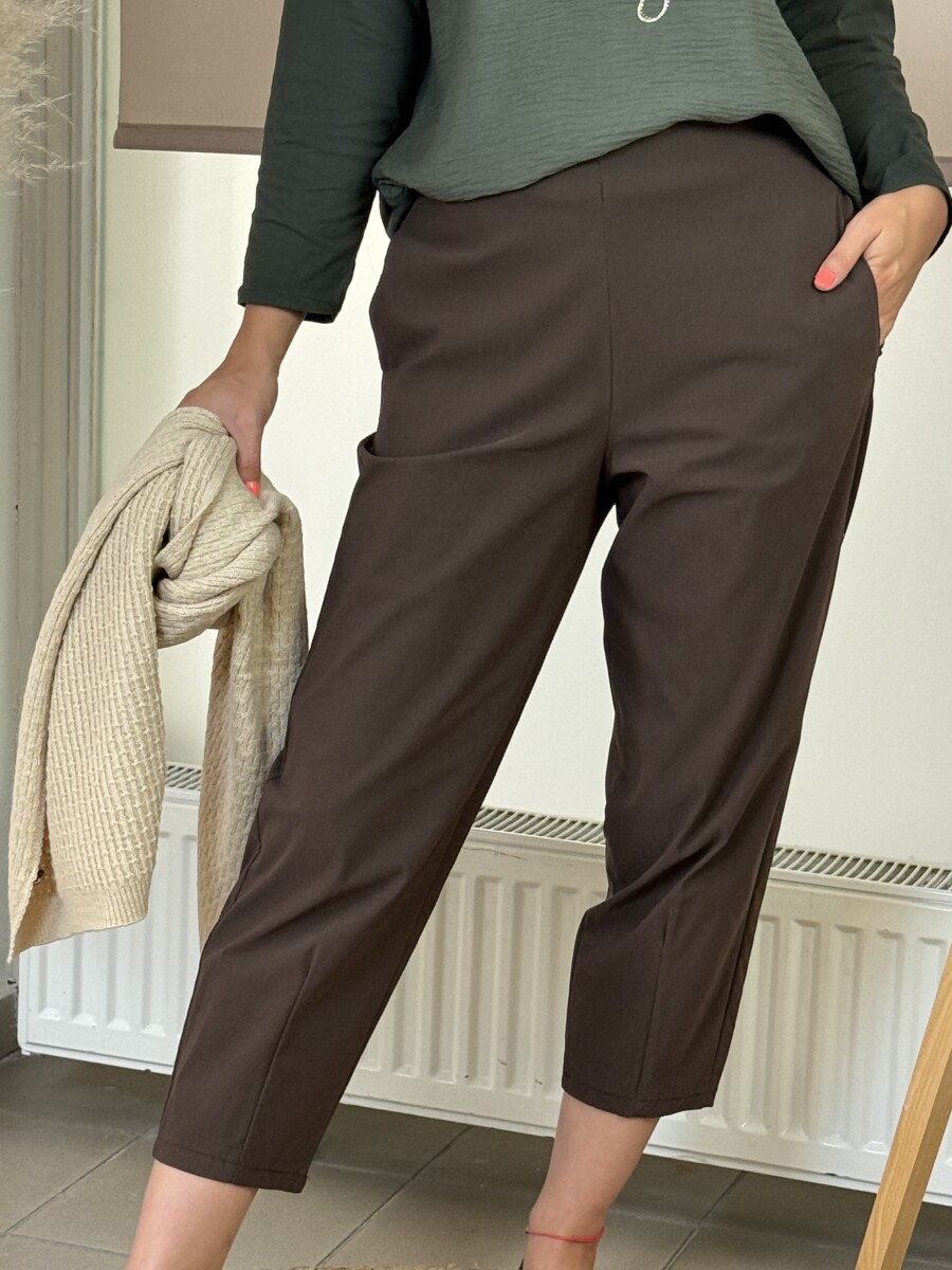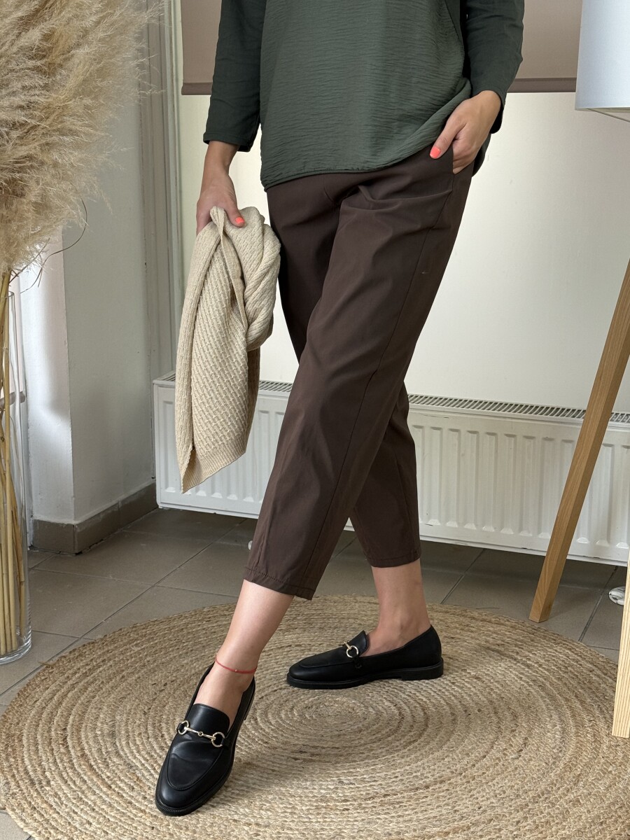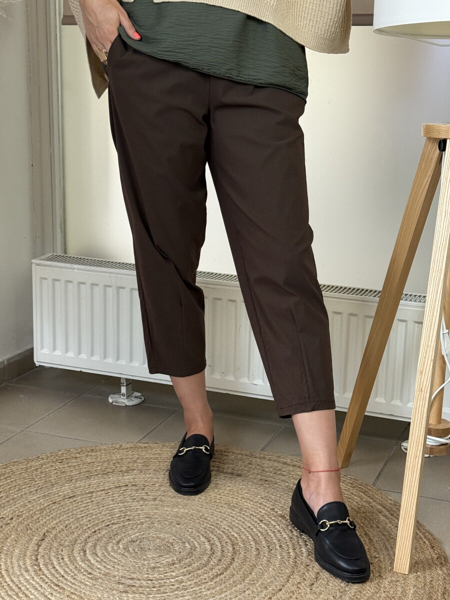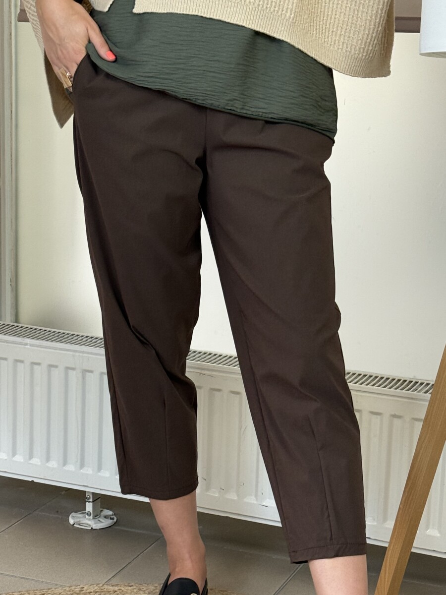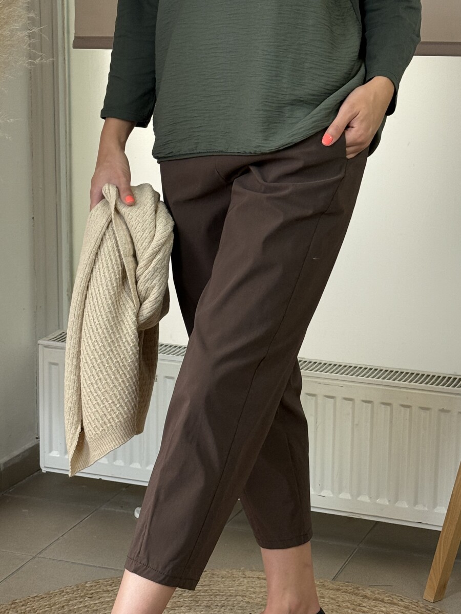 Gumis derekú, svéd zsebes, szűkülő szárú, hátul egy nagy zsebes, színes mom fit fazonú nadrág .