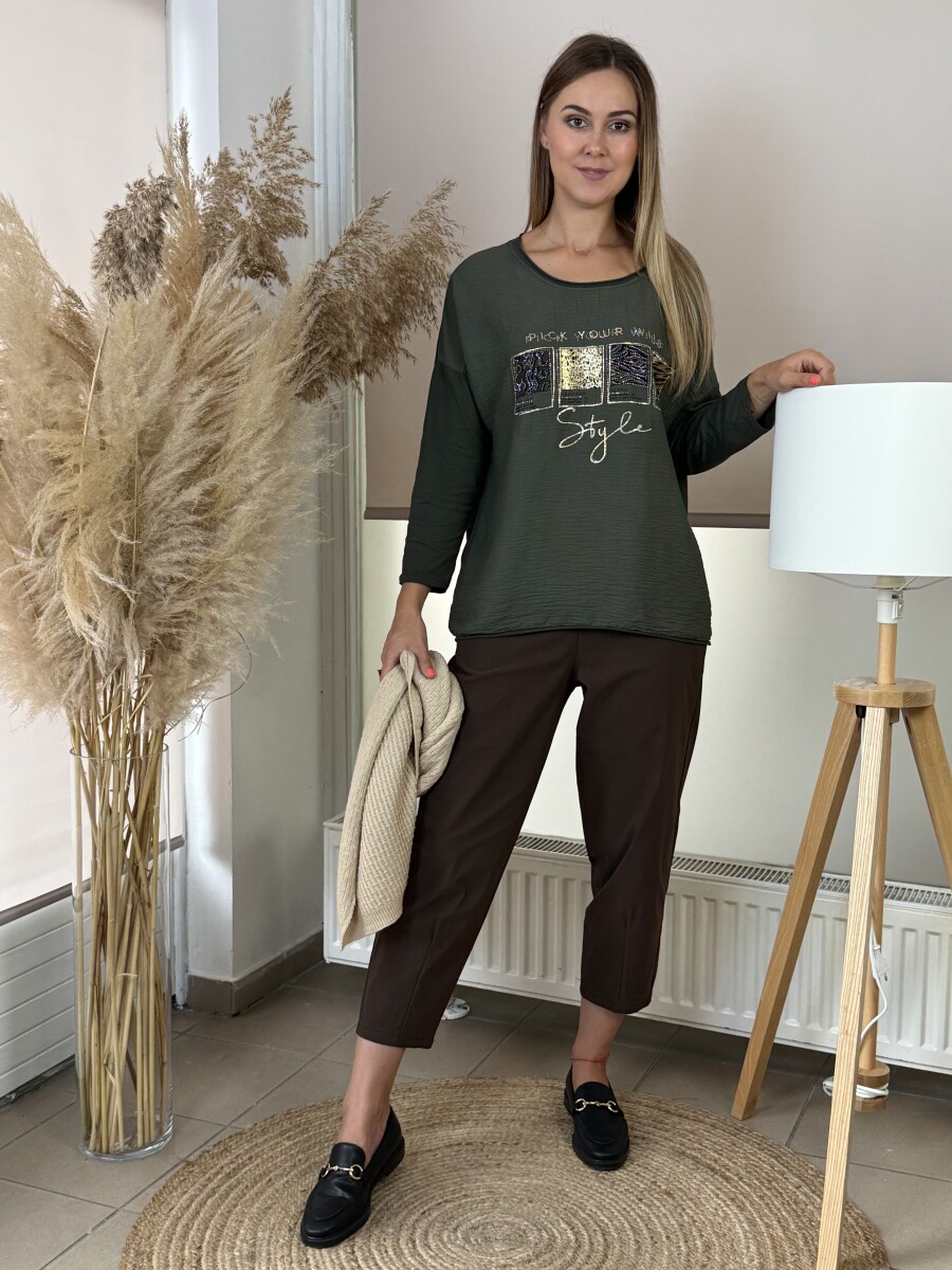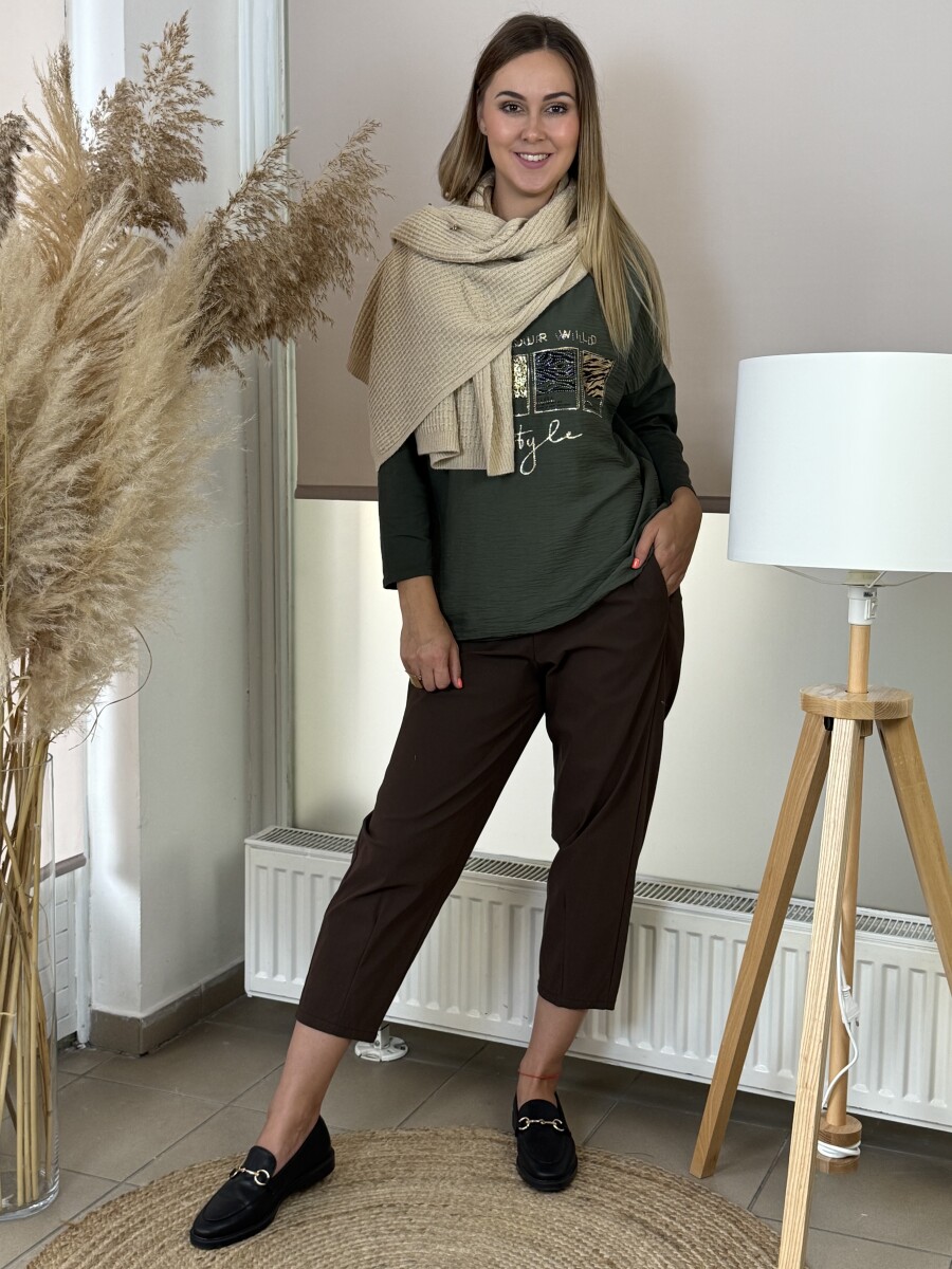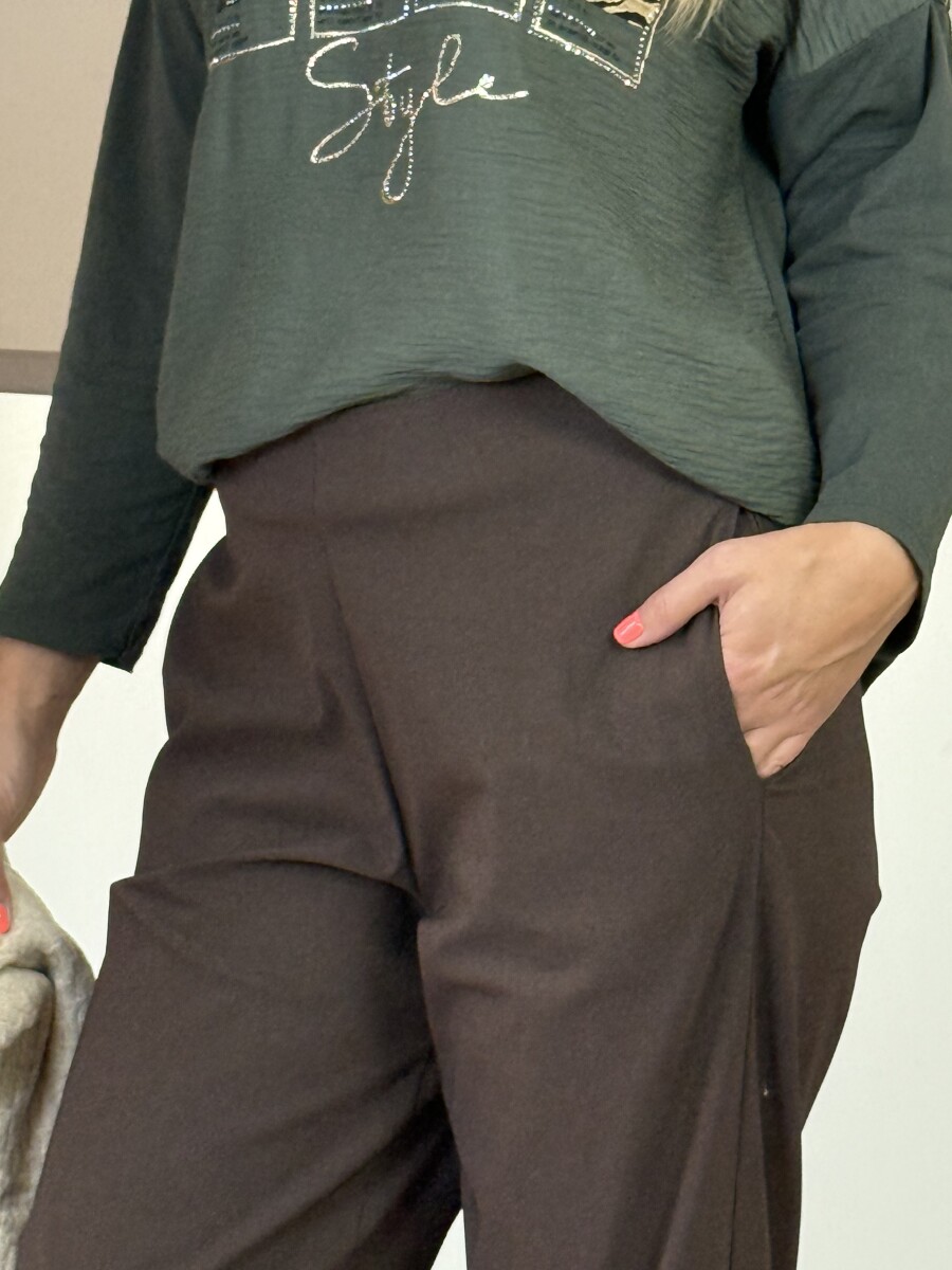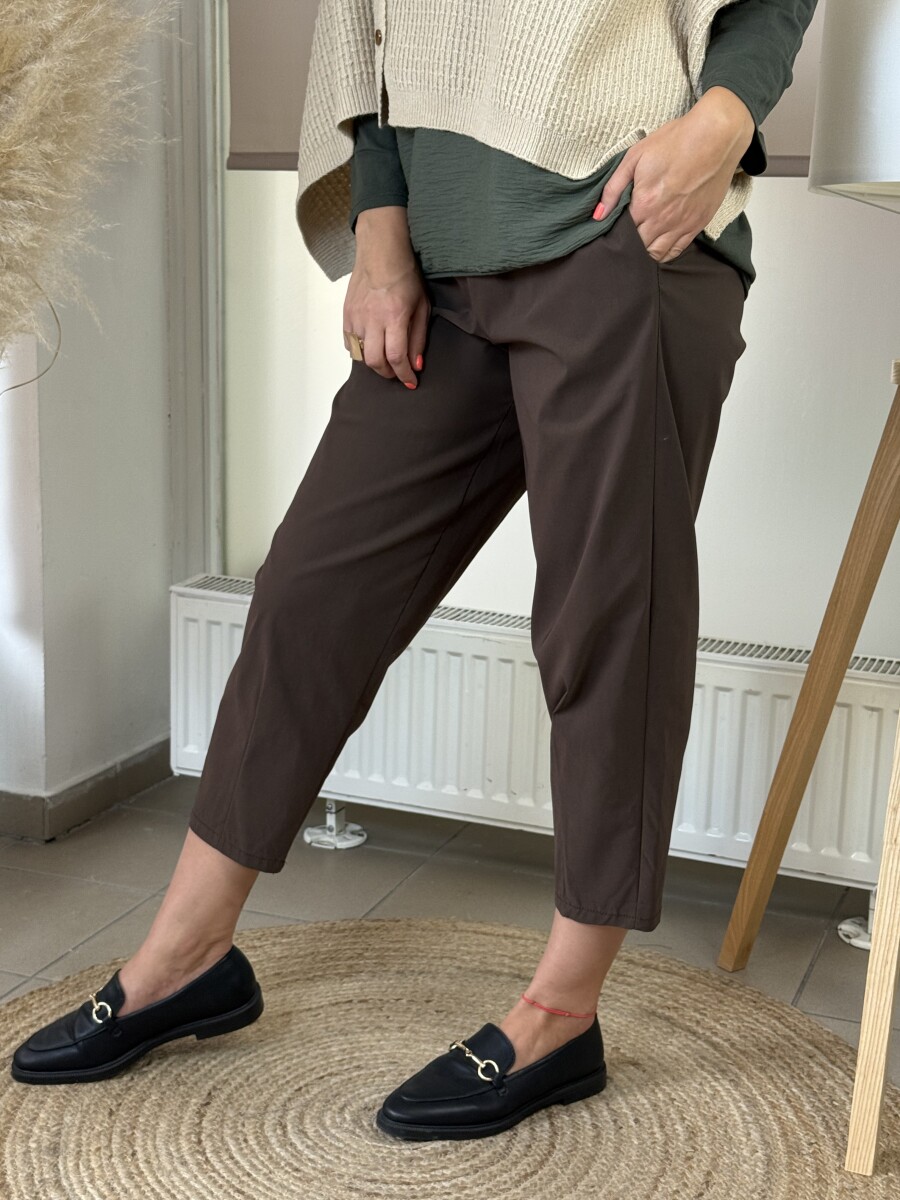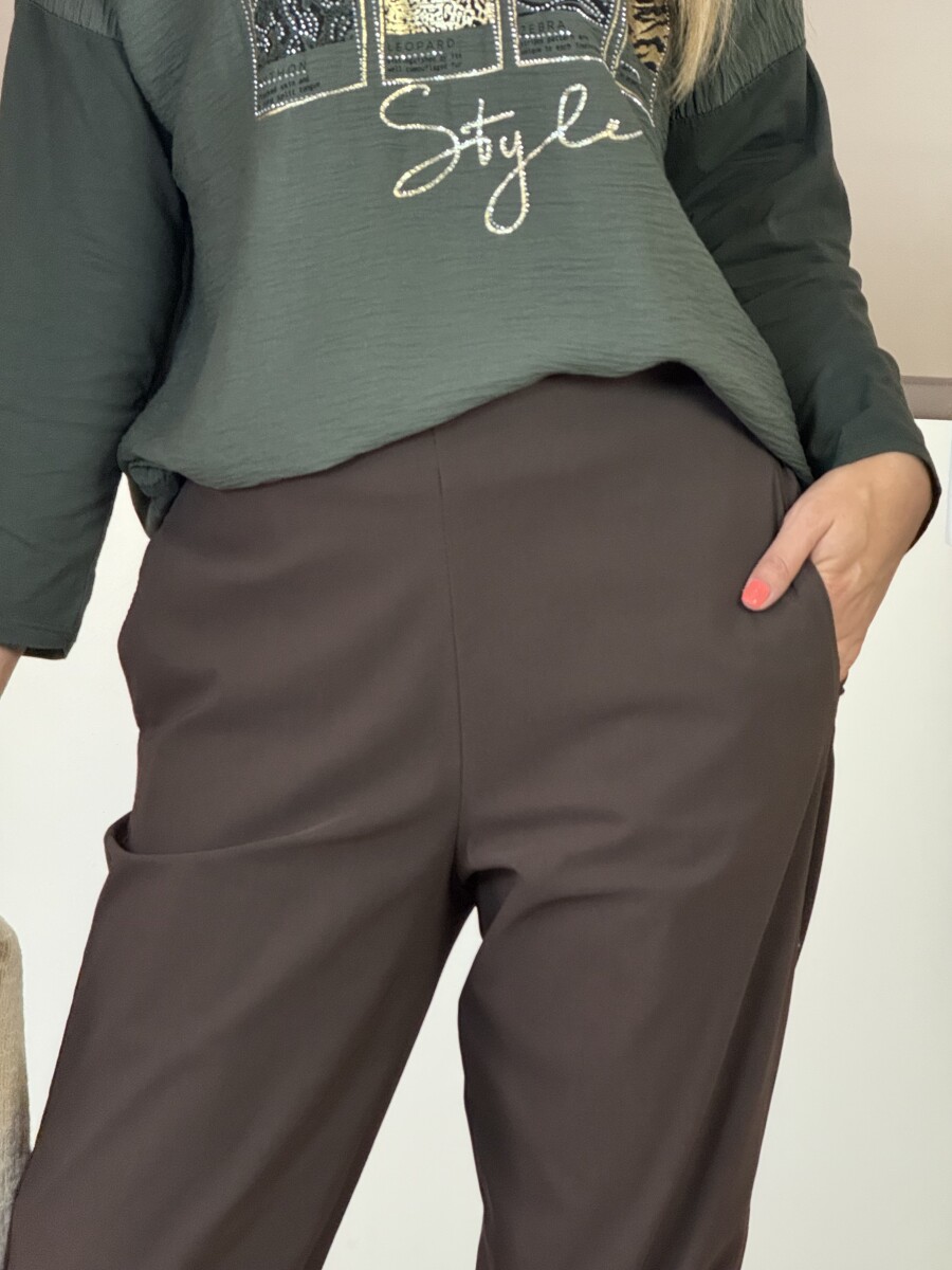 Gumis derekú, svéd zsebes, szűkülő szárú, hátul egy nagy zsebes, színes mom fit fazonú nadrág .