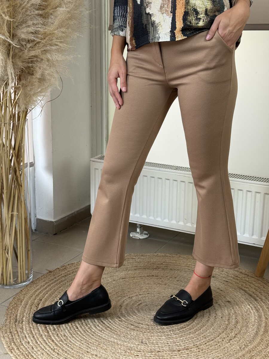 Trapéz szárú, normál derékmagasságú, derék résznél övbújtatós, hátul rejtettzsebes elől pedig 2 svédzsebes, 7/8 szárhosszúságú nadrág .