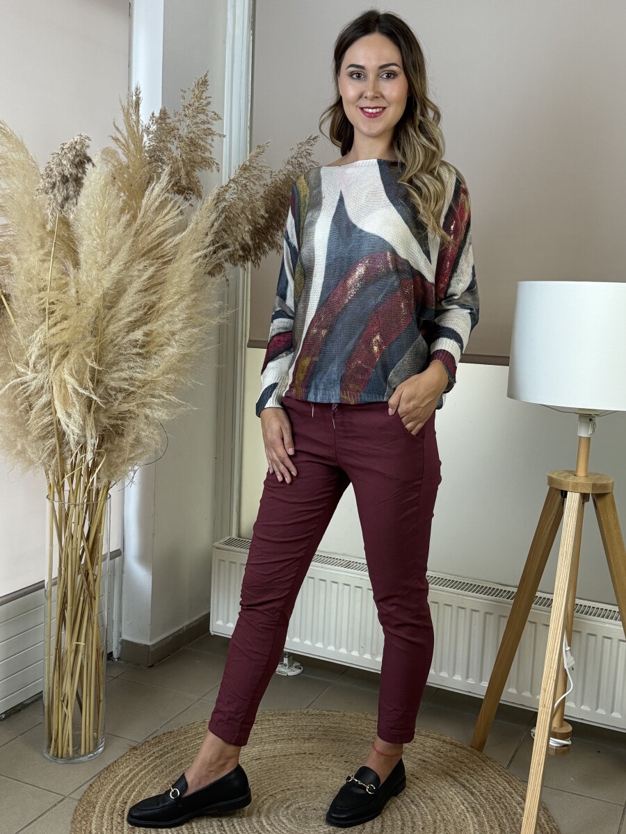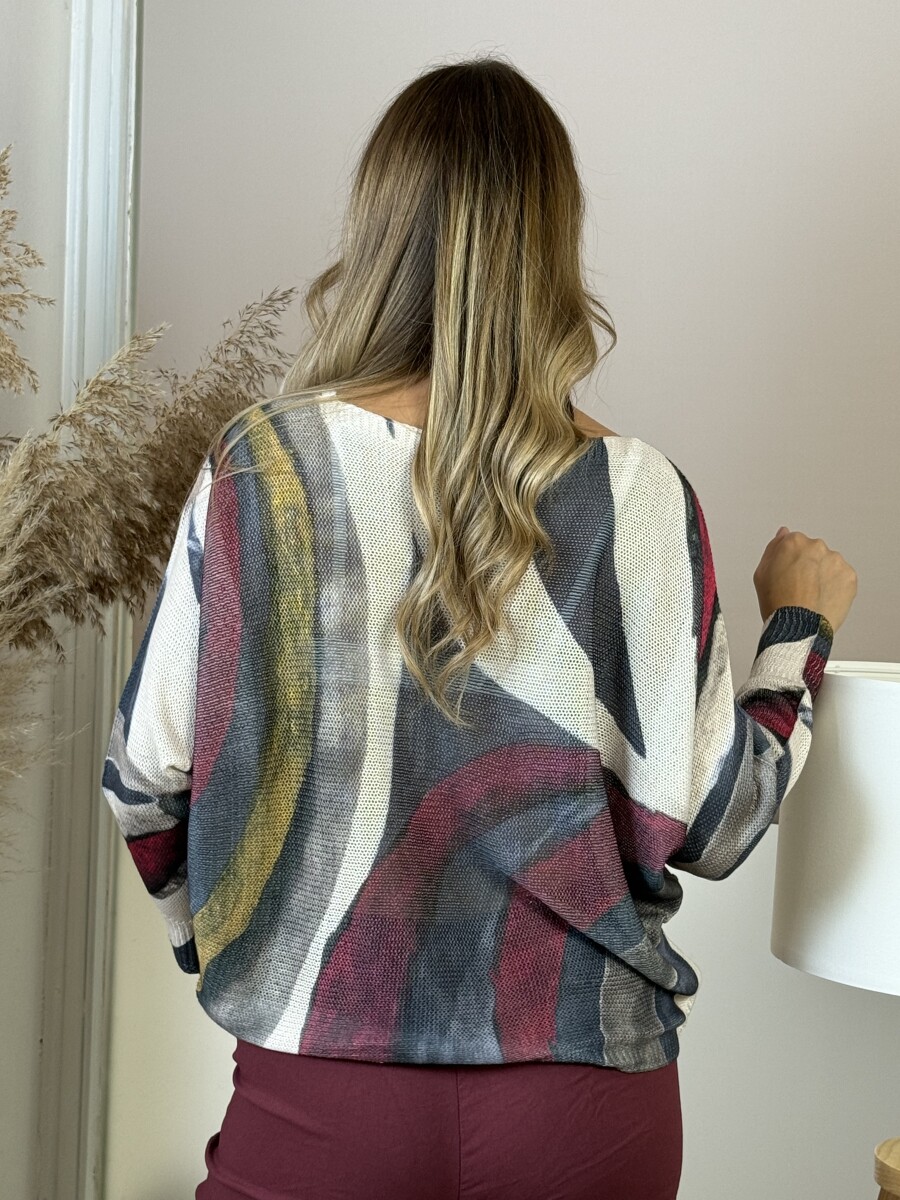Csónak nyakkivágású, passzés aljú, denevér ujjú, vékony horgolt, könnyed, kényelmes, laza fazonú felső .