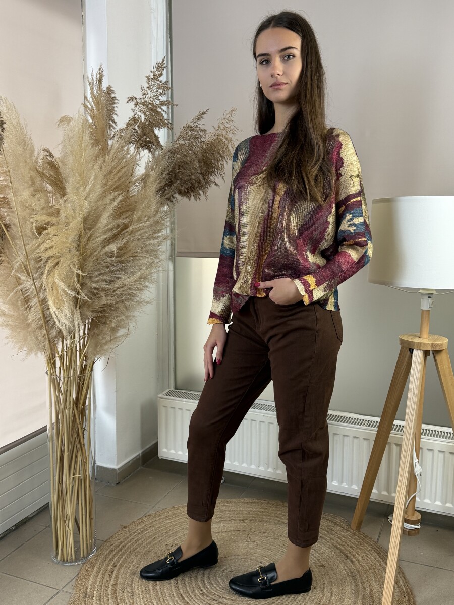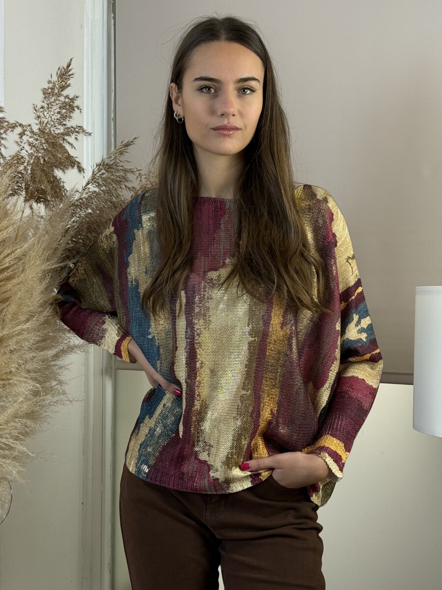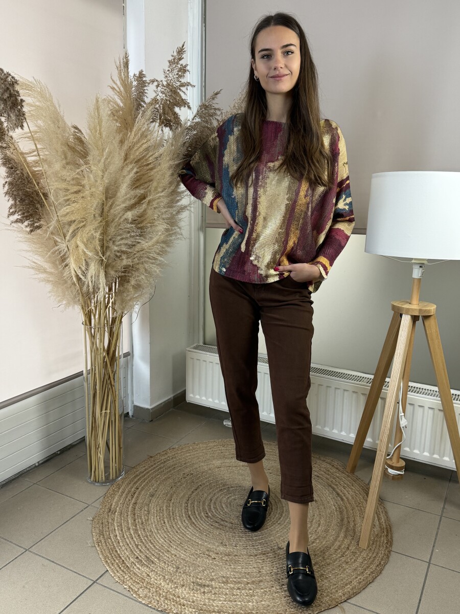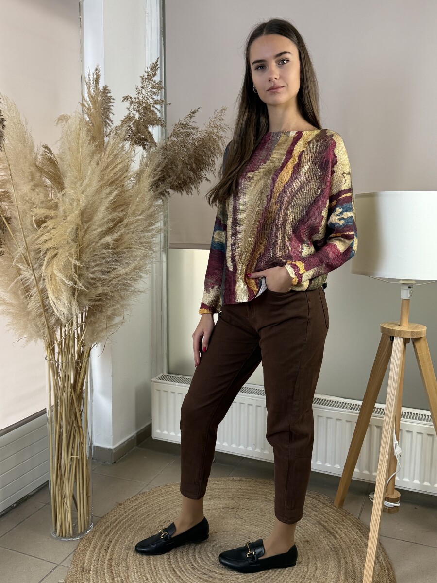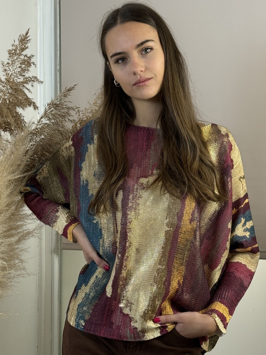 Csónak nyakkivágású, passzés aljú, denevér ujjú, vékony horgolt, könnyed, kényelmes, laza fazonú felső .