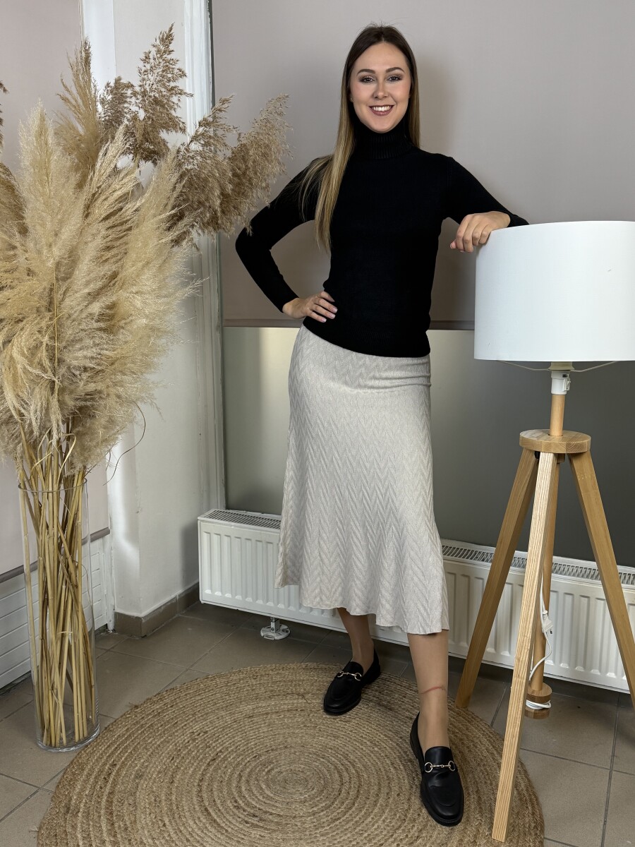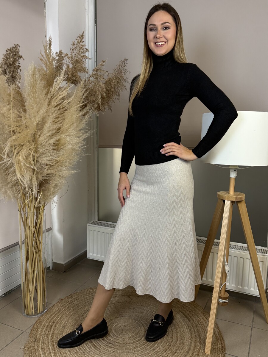 Finomkötésű, középvastag anyagú, puha kényelmes viseletű garbó nyakú pulóver .