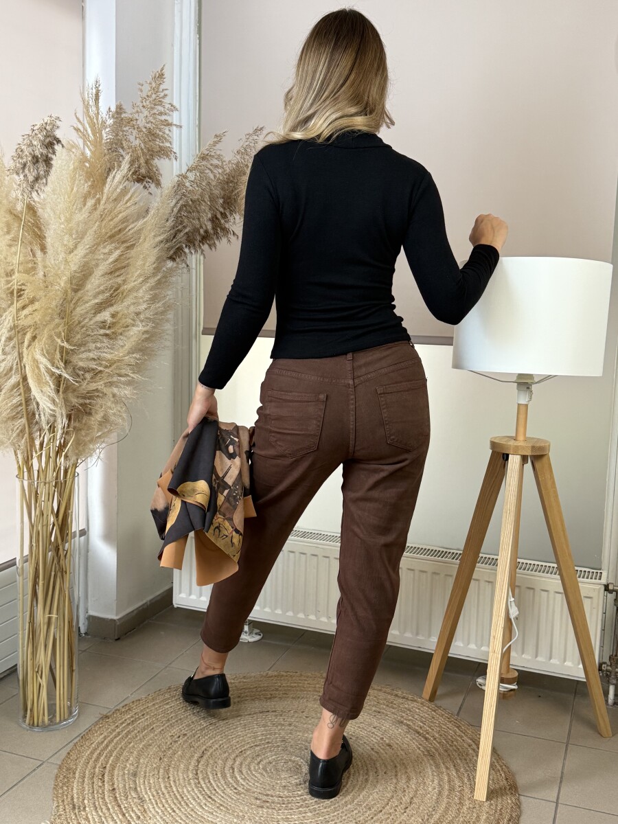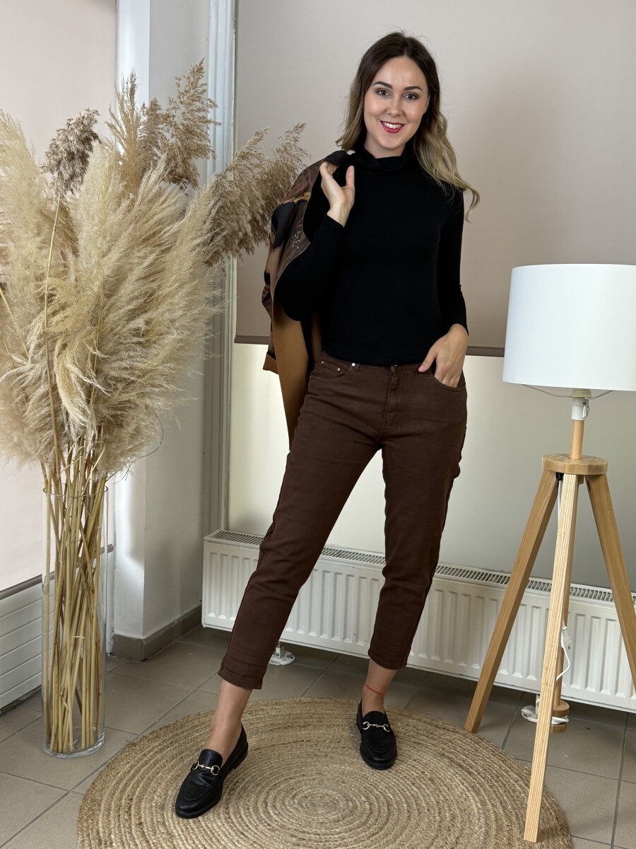 Finom tapintású, testvonalat követő, rugalmas anyagú, normál szabású hosszú ujjú, garbó .