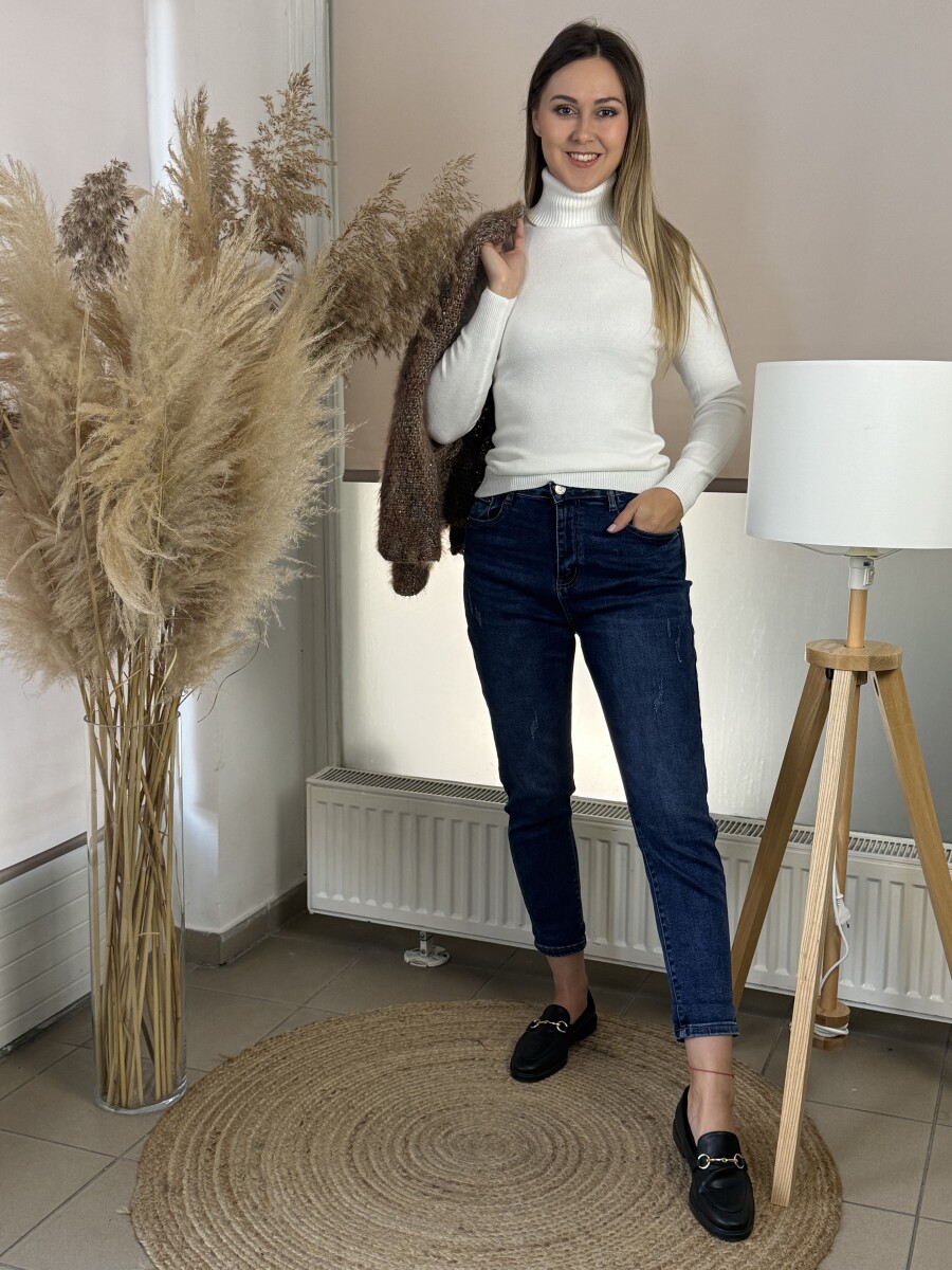 Finomkötésű, középvastag anyagú, puha kényelmes viseletű garbó nyakú pulóver .