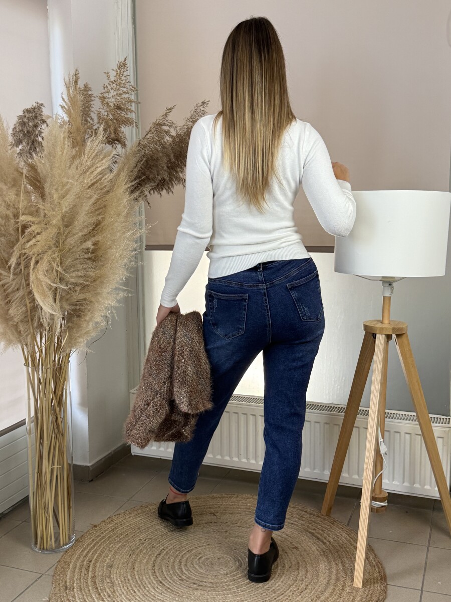 Finomkötésű, puha, középvastag anyagú, garbó nyakú pulóver, ujjvégek bordázott passzéval.