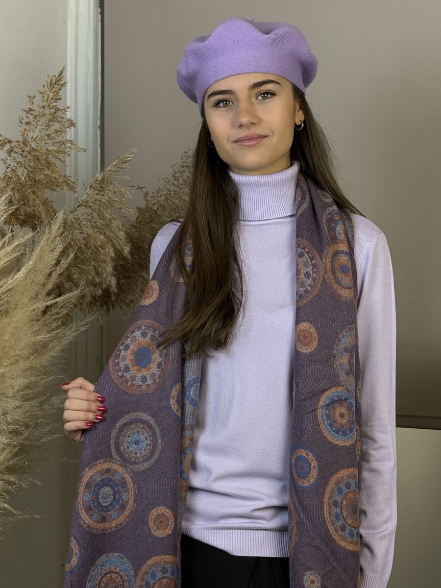 Kötött barett sapka, nőies fazon, anyaga kasmír puhaságú, rugalmas, kényelmes .