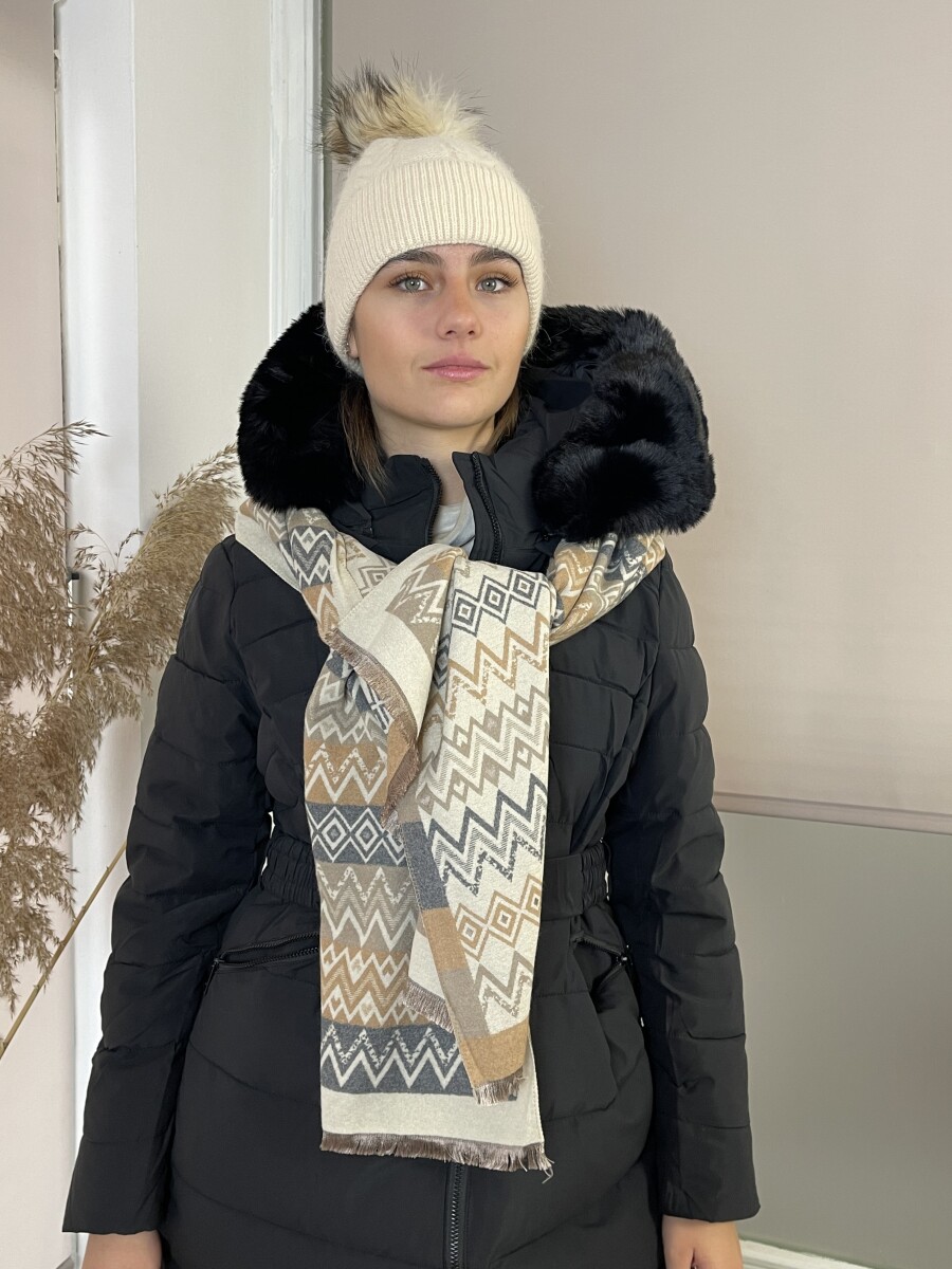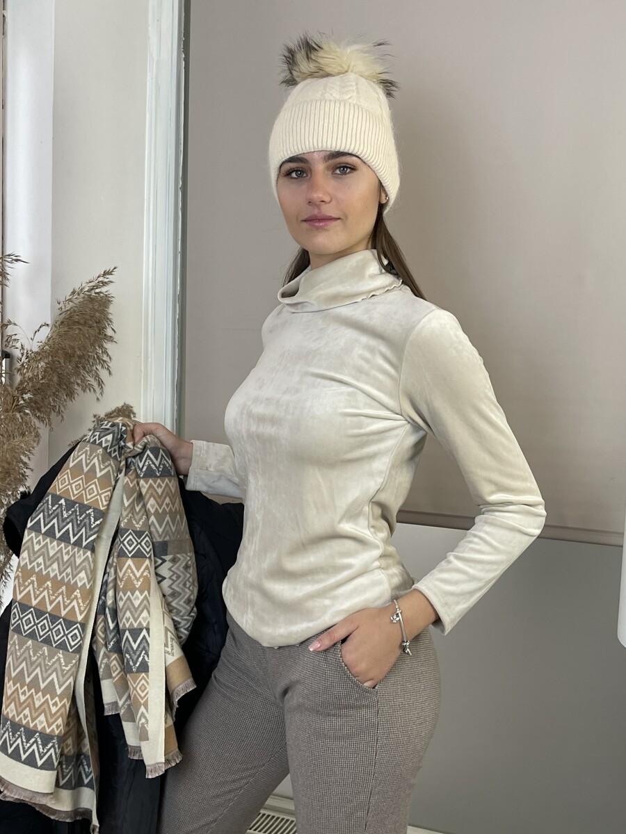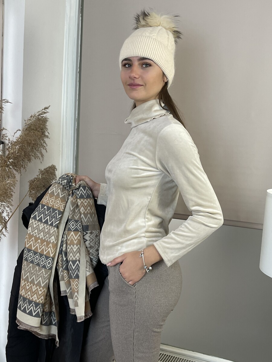 Csavart, vastag kötésű téli bojtos sapka, bojt lekapcsozható.