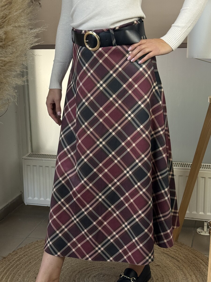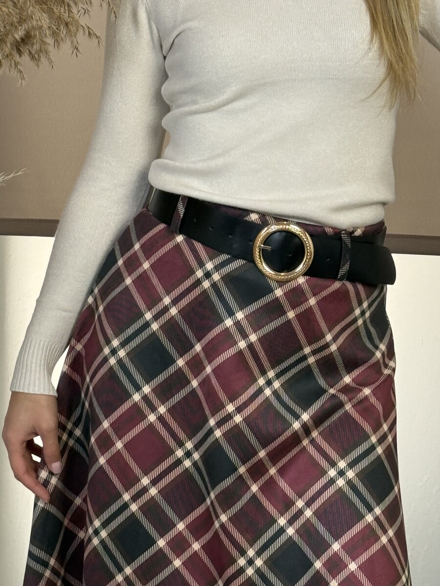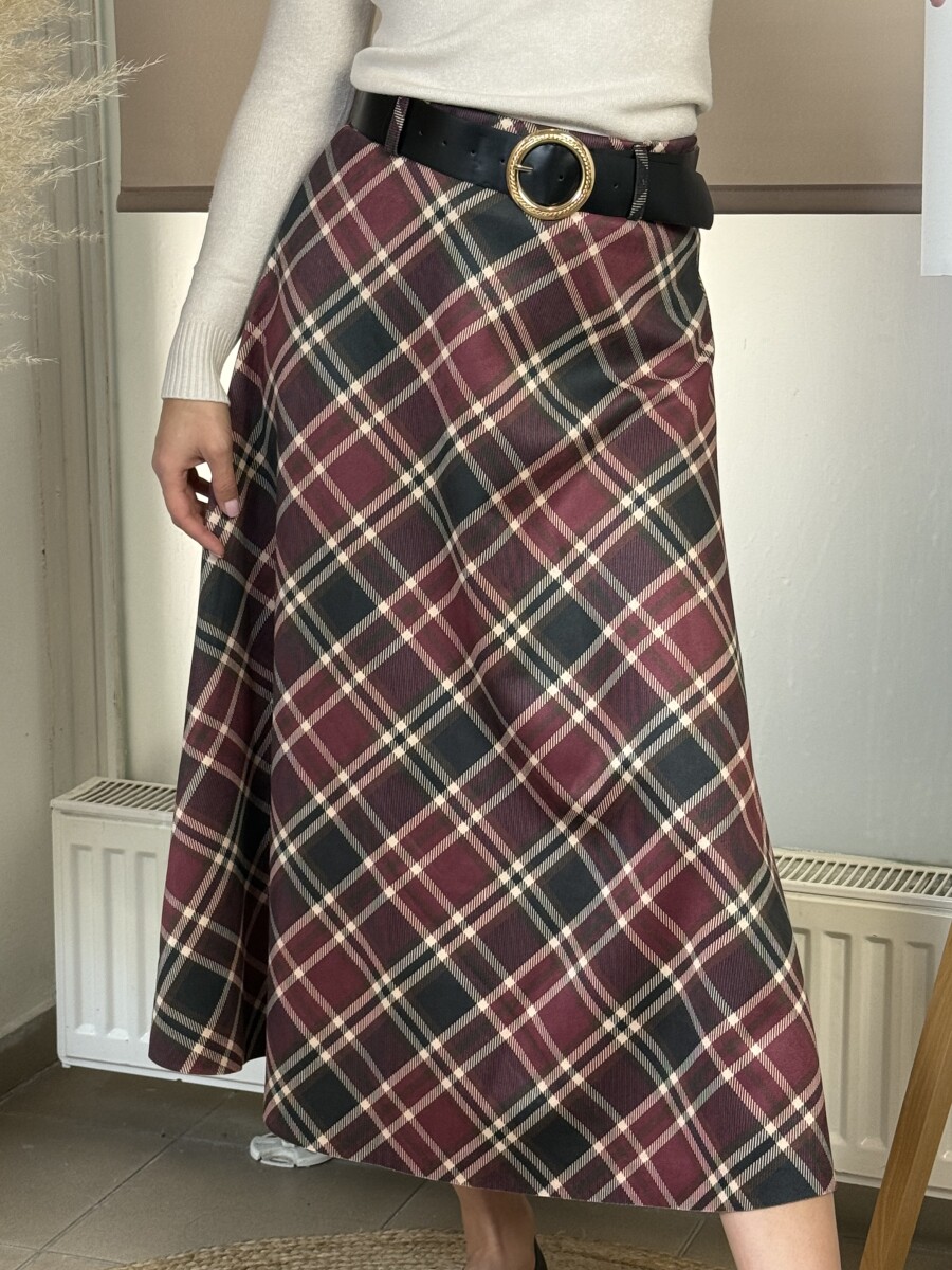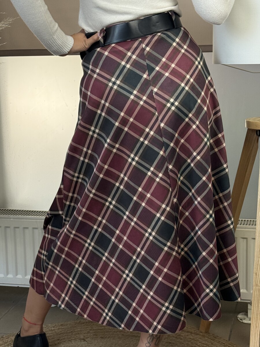 Á vonalú, gumis derekú, alján lézervágott, mérsékelten rugalmas anyagú öves maxi szoknya. ( Az öv a szoknya tartozéka . )