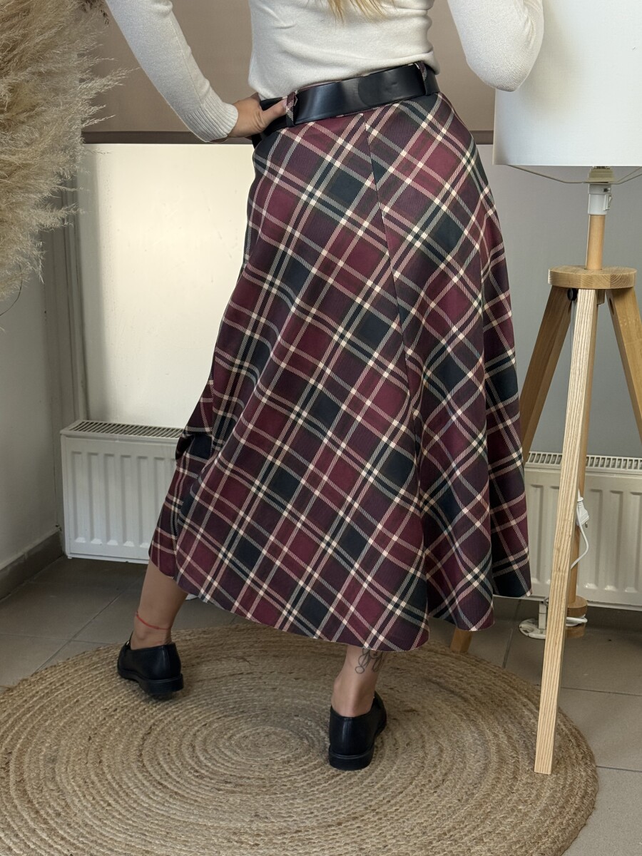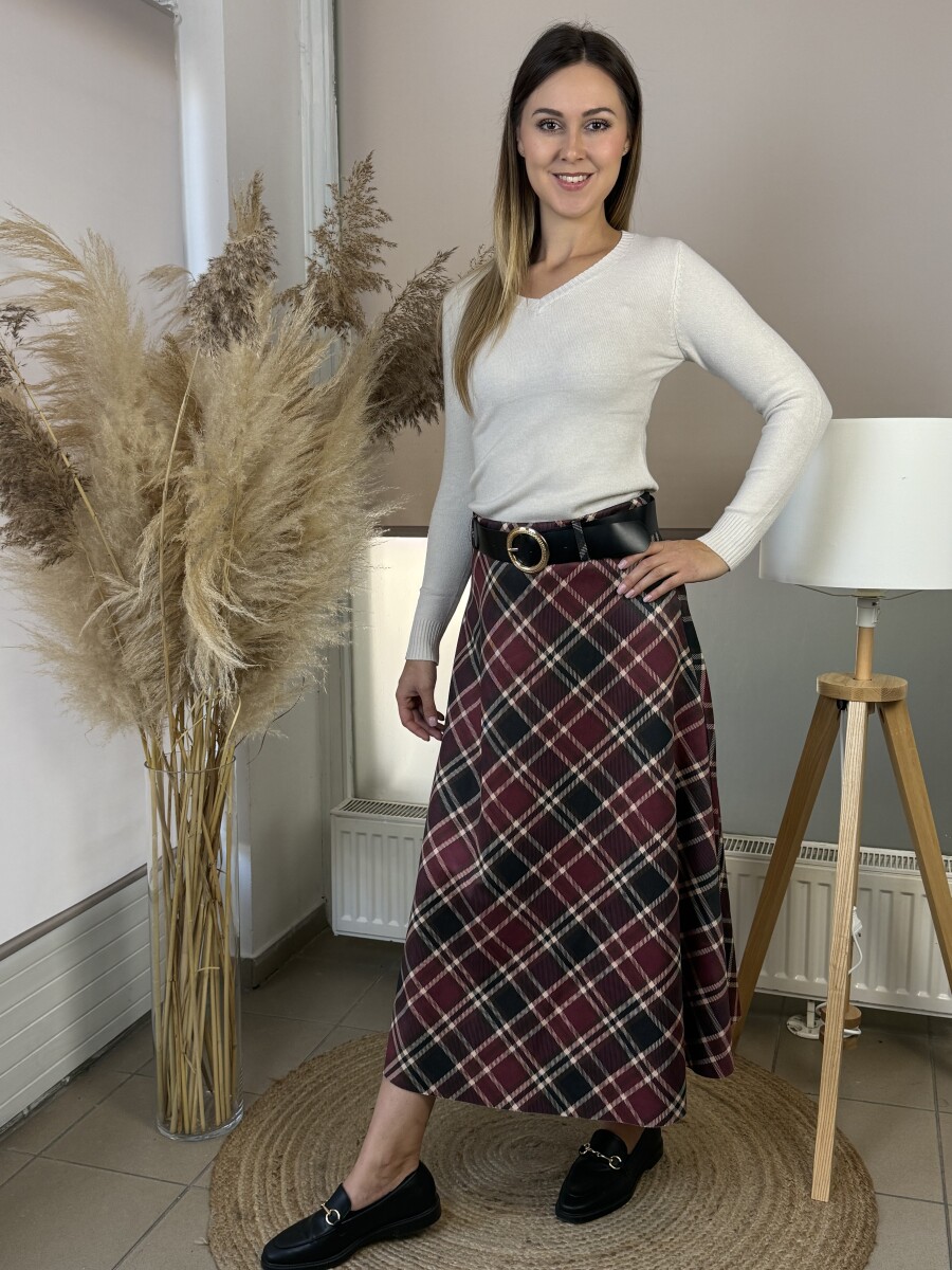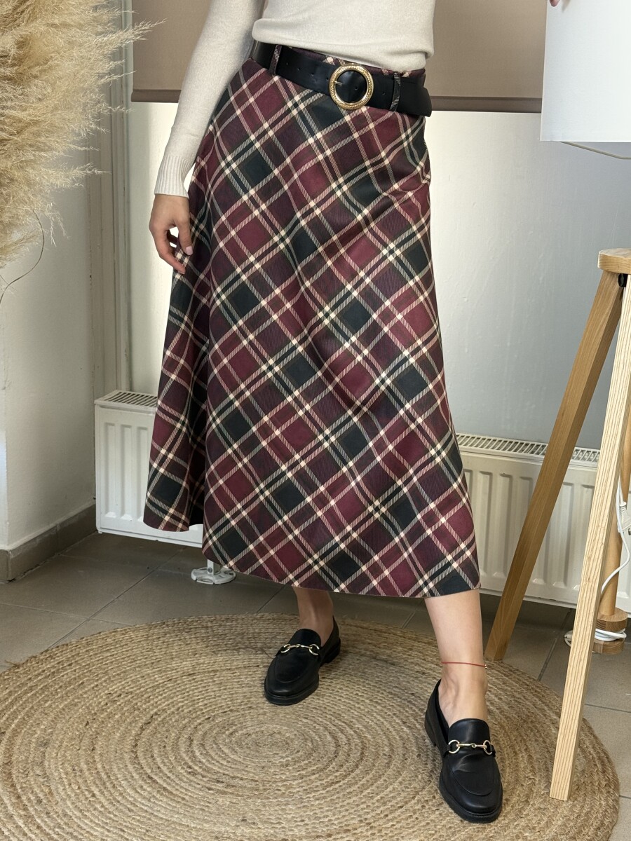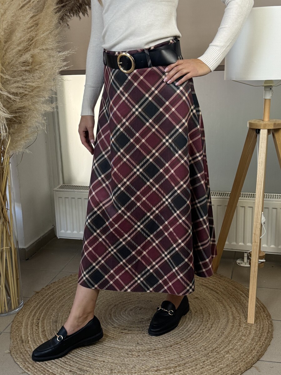 Á vonalú, gumis derekú, alján lézervágott, mérsékelten rugalmas anyagú öves maxi szoknya. ( Az öv a szoknya tartozéka . )