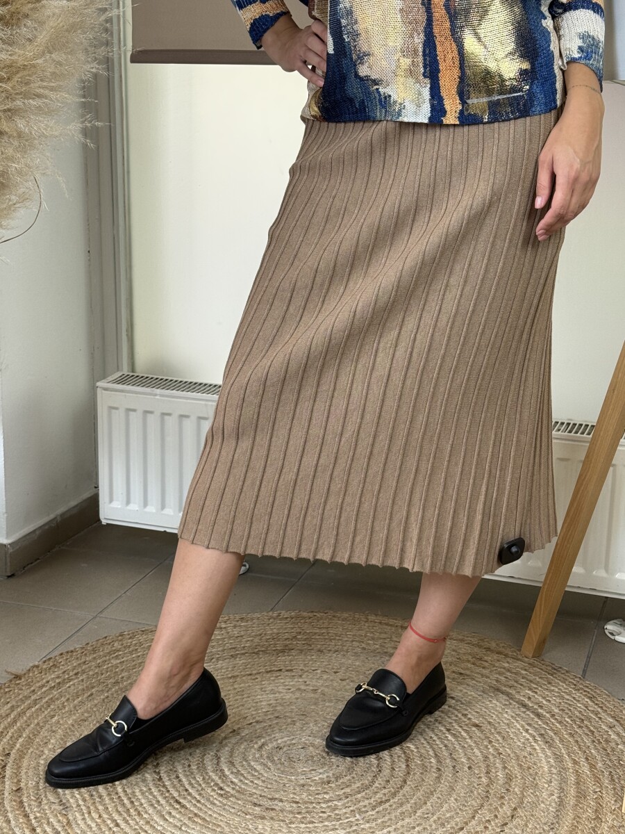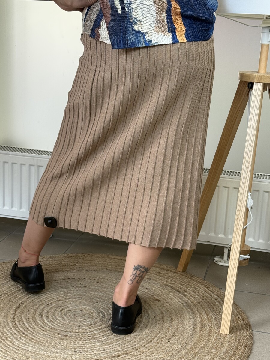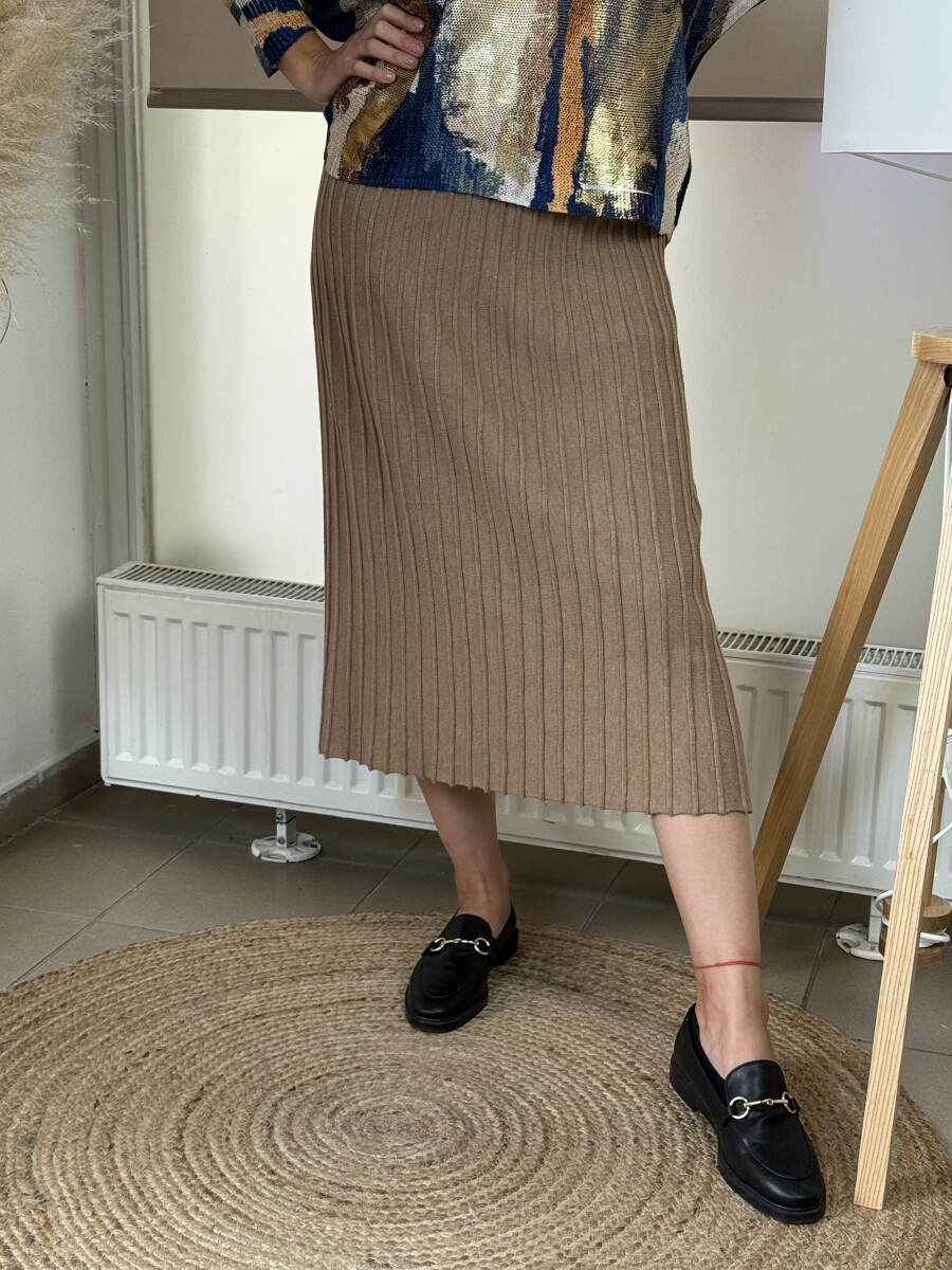 Vastag bordázott kötésű, kényelmes puha viseletű, testvonalat követő kötött alj.