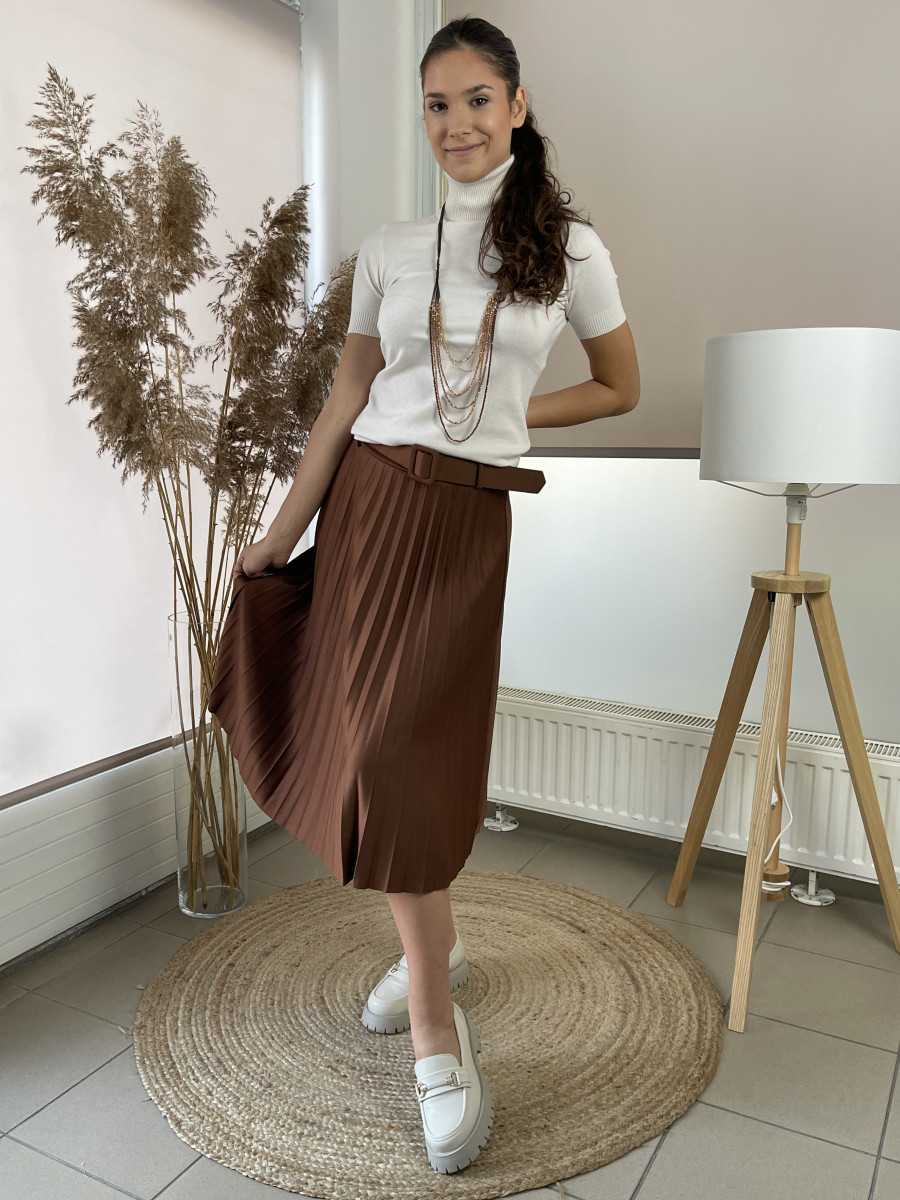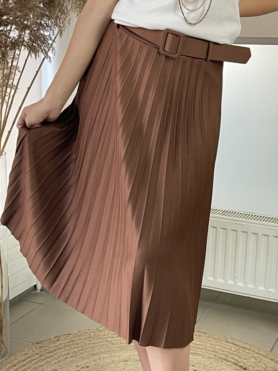 Gumis derekú, plisszírozott, A vonalas, öves szoknya. ( Az öv a szoknya tartozéka . )