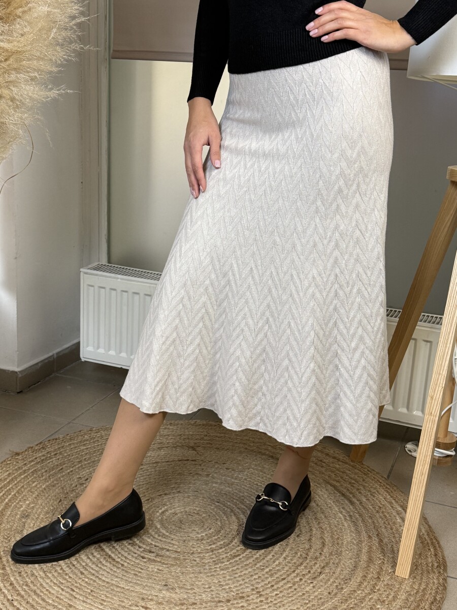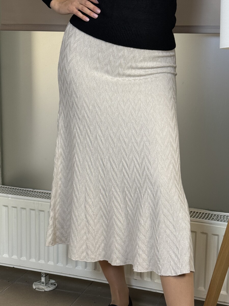 Gumis derekú, Á vonalas, mintás kötésű, kényelmes viseletű, kötött alj.