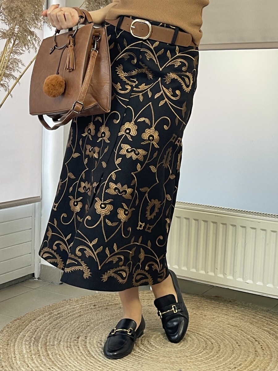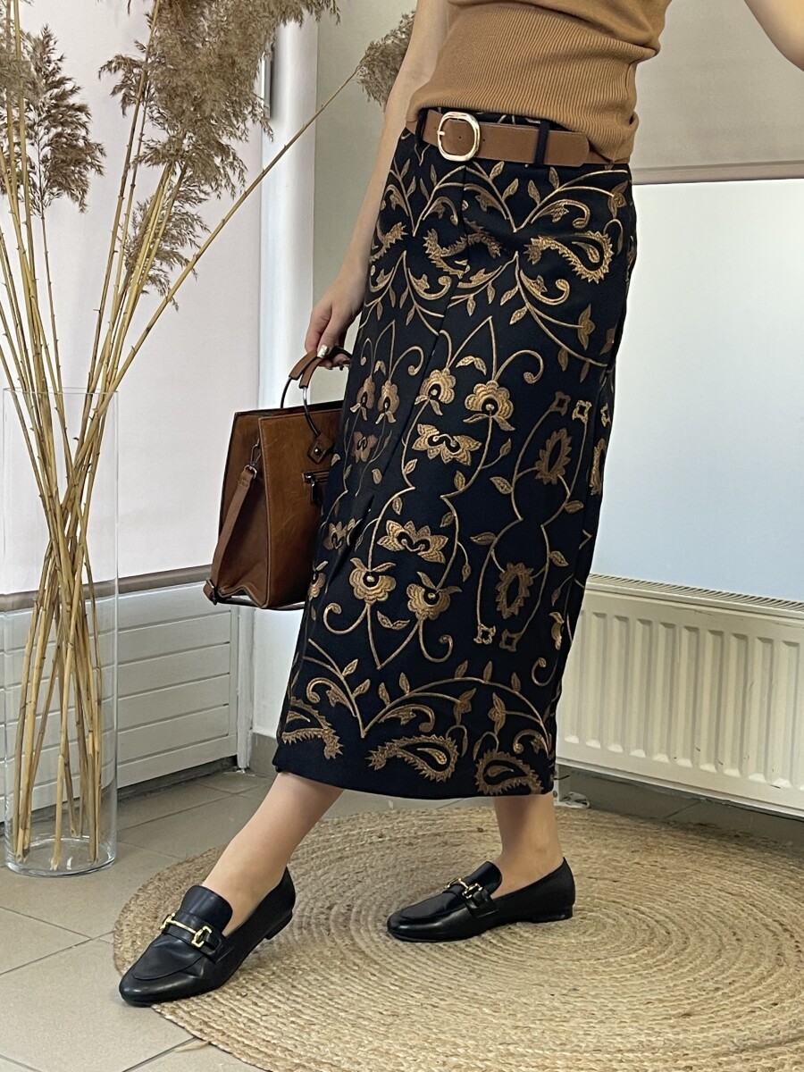Hímzett szövet midi alj